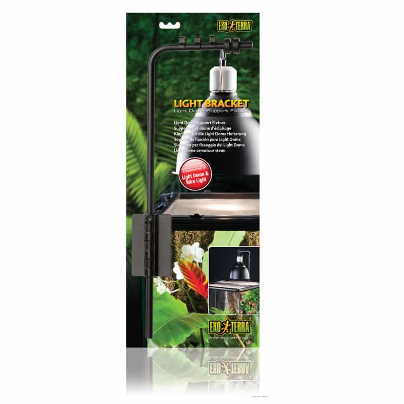 Die Exo Terra Licht-Klammer wurde konstruiert, um die Exo Terra Light Dome oder ähnliches oder Drahthalterungen über einem Exo Terra Terrarium oder anderen Glasterrarien sicher aufzuhängen. Die Exo Terra Licht-Klammer lässt sich einfach anpassen und passt zu den meisten Halterungen. Mit der Exo Terra Licht-Klammer können Sie die Wärme und das Licht gemäß den entsprechenden Terrarienbedingungen anpassen, indem Sie die Gummischeibe verschieben. Da die Lampen nach der Installation nicht mehr bewegt werden müssen – und eine erhöhte Belüftung besteht – wird die Lebensdauer der Lampen (Spot-Lampen, Solar Glo usw.) enorm verlängert.