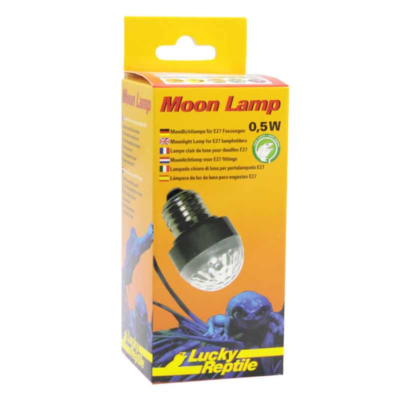 Die in alle E27-Fassungen passende Moon Lamp produziert nur wenig Wärme und stört damit nicht die Nachtabsenkung der Terrarientemperatur. Da sie viel von ihrem Licht in einem Lichtkegel abstrahlt ist sie jedoch in erster Linie für höhere Terrarien geeignet. Im Lichtkegel liegende Terrarienbereiche (z.B. eine Astgabel oder ein Teil des Terrarienbodens) sind dabei stärker ausgeleuchtet als Randbereiche des Terrariums. Dadurch entsteht der Eindruck einer vom Mondlicht beschienenen Lichtung im Terrarium.