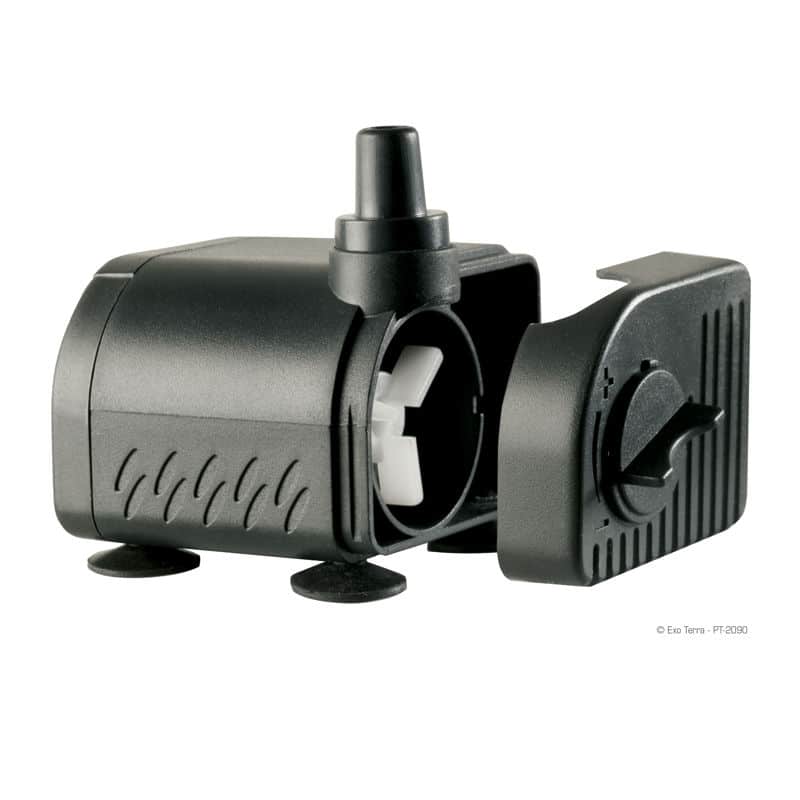 Die Repti Flo 200 Terrarienpumpe arbeitet mit einem energieeffizienten, wartungsfreien Motor. Er sorgt für einen leistungsstarken Wasserauslass.