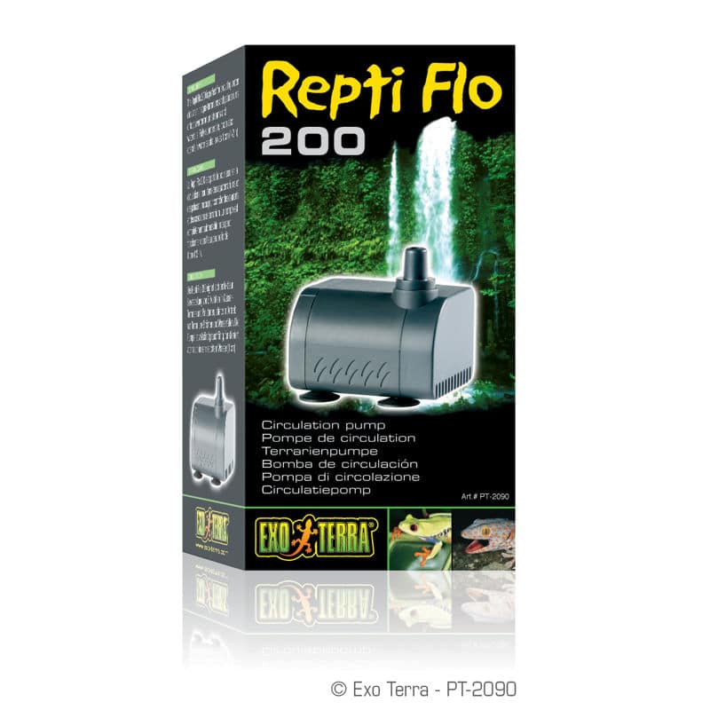 Die Pumpe ist ideal, um den Sauerstoffgehalt im Wasser zu verbessern, indem sie für eine Wasserzirkulation in Aqua-Terrarien und Paludarien sorgt oder Wasserströme oder Wasserfälle im Terrarium erzeugt. Diese kompakte Pumpe ist vollständig unter Wasser tauchbar. Die Repti Flo 200 kann ebenfalls als Ersatzpumpe für alle Größen des Exo Terra Wasserfalls benutzt werden.